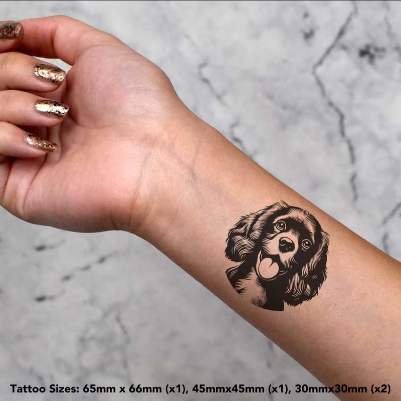 Azeeda 4 x 'Cocker Spaniel Hund' Temporäre Tattoos - Wasserfest, Hautfreundlich & Ungiftig · Transfers in Verschiedenen Größen (TO00073484)
