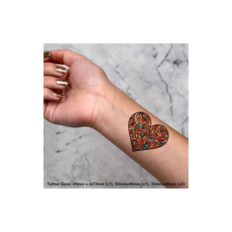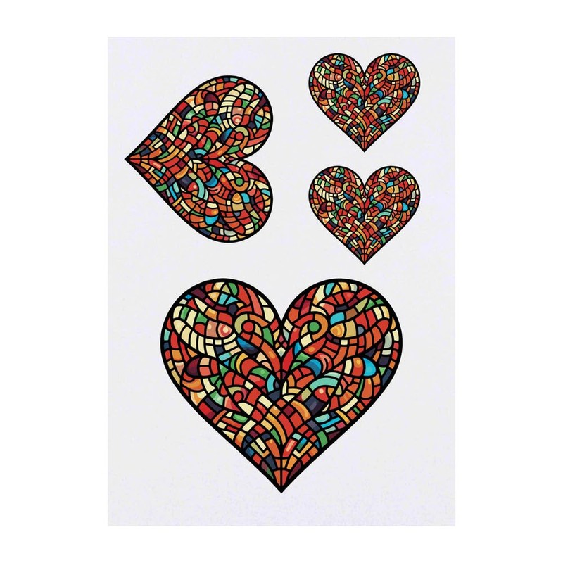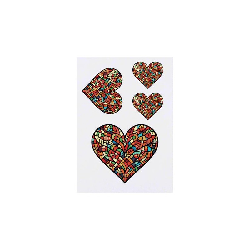 Azeeda 4 x 'Glasmalerei Herz' Temporäre Tattoos - Wasserfest, Hautfreundlich & Ungiftig · Transfers in Verschiedenen Größen (TO00077544)