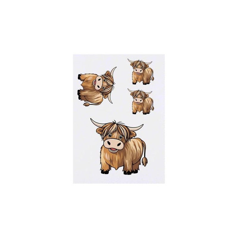 Azeeda 4 x 'Glückliche Hochlandkuh' Temporäre Tattoos - Wasserfest, Hautfreundlich & Ungiftig · Transfers in Verschiedenen Größen (TO00075442)