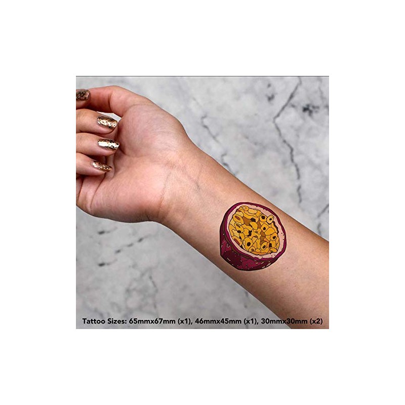 Azeeda 4 x 'Halbierte Passionsfrucht' Temporäre Tattoos - Wasserfest, Hautfreundlich & Ungiftig · Transfers in Verschiedenen Größen (TO00015273)