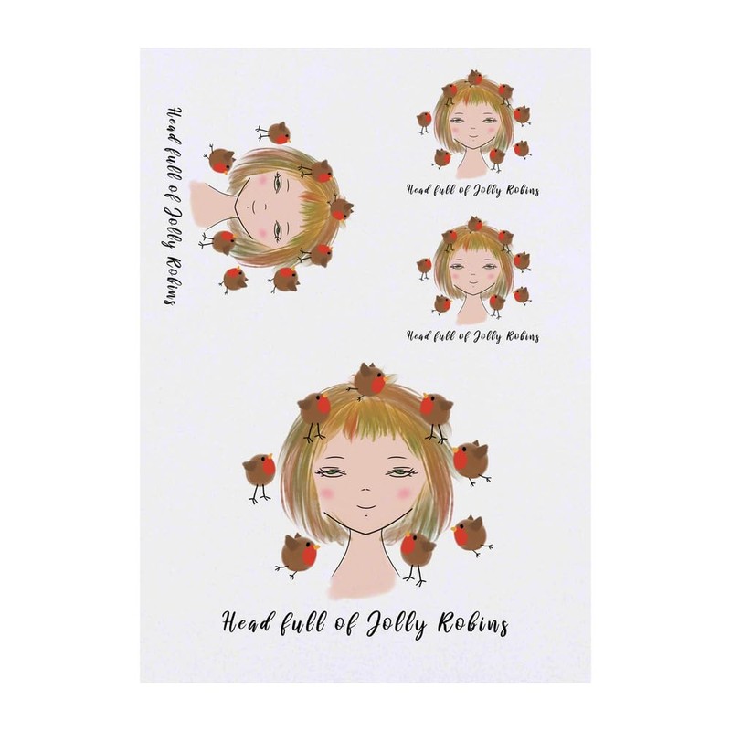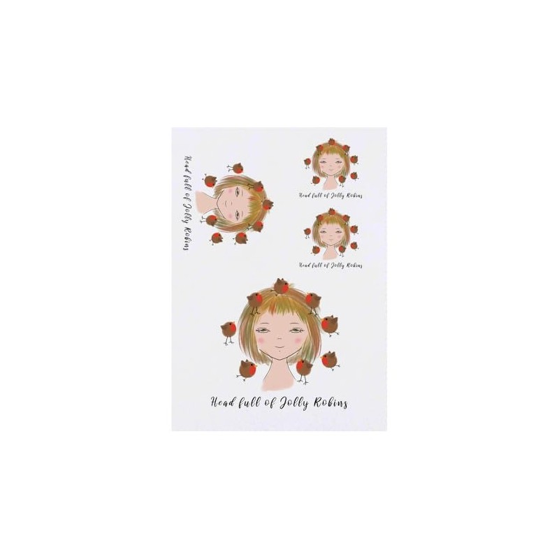 Azeeda 4 x 'Kopf voller lustiger Rotkehlchen' Temporäre Tattoos - Wasserfest, Hautfreundlich & Ungiftig · Transfers in Verschiedenen Größen (TO00076110)