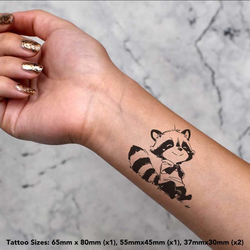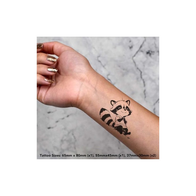 Azeeda 4 x 'Niedlicher skizzenhafter Waschbär sitzend' Temporäre Tattoos - Wasserfest, Hautfreundlich & Ungiftig · Transfers in Verschiedenen Größen (TO00084910)
