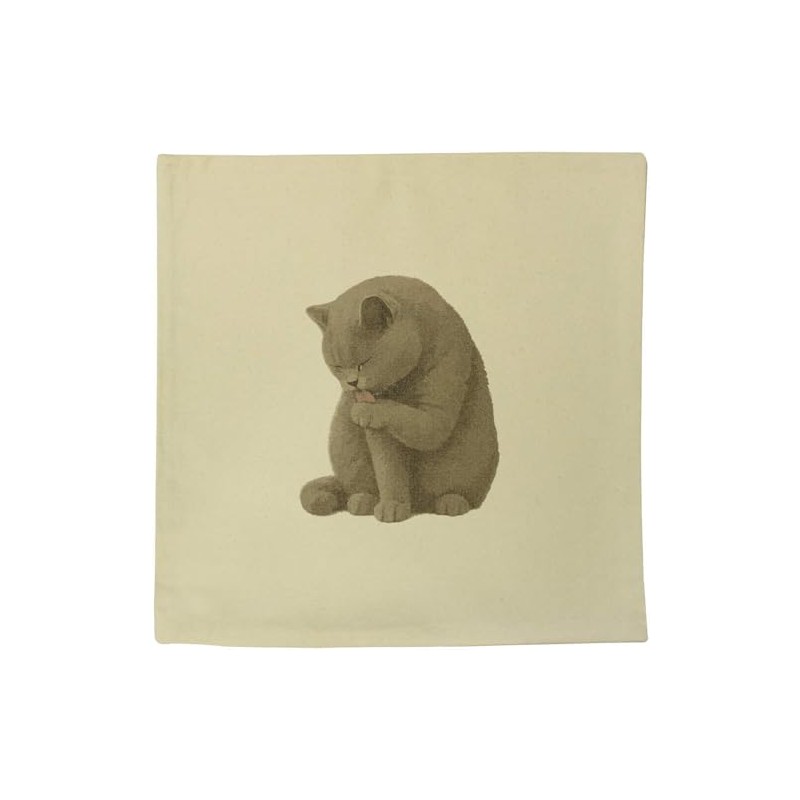 Azeeda 40cm x 40cm 'British Shorthair Cat Licking Paw' Canvas Cushion Cover (CV00045502)