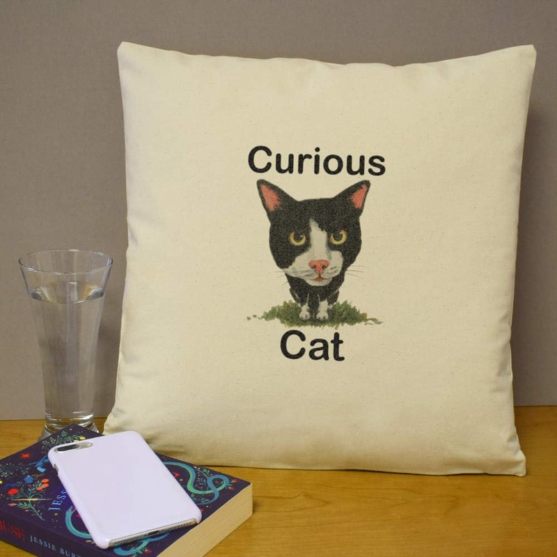Azeeda 40cm x 40cm 'Curious Cat' Canvas Cushion Cover (CV00045919)