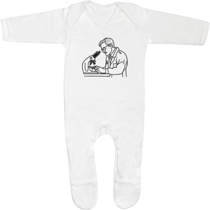 Azeeda 6-12 Month 'Scientist Examining a Microscope Slide' Baby Romper Jumpsuit/Sleep Suit (SS00080048) White