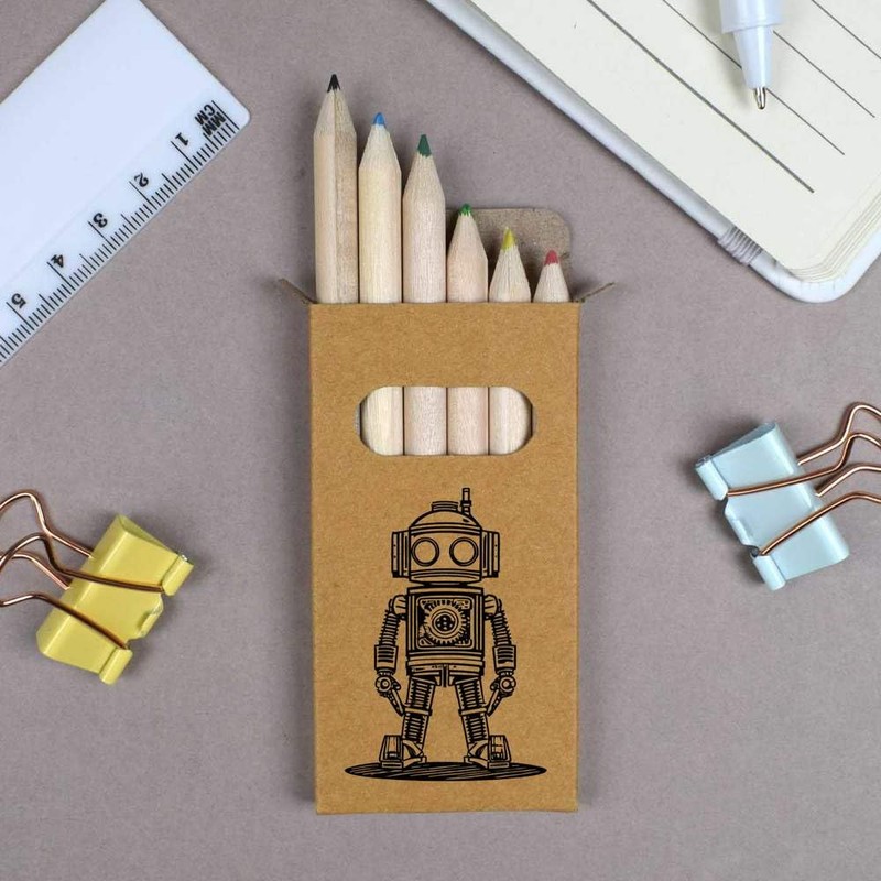 Azeeda 6 x 'Clockwork Steampunk Robot' Short 85mm Pencils/Coloured Pencil Set (PE00059588)