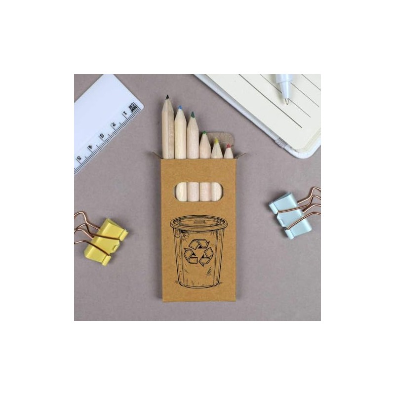 Azeeda 6 x 'Recycle Bin' Short 85mm Pencils/Coloured Pencil Set (PE00067924)
