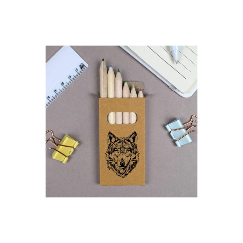 Azeeda 6 x 'Wolf Portrait' Short 85mm Pencils/Coloured Pencil Set (PE00067922)