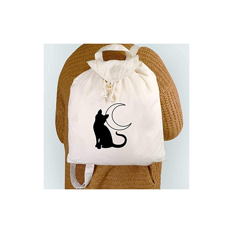 Azeeda 'Cat & Moon' Canvas Rucksack/Backpack (RK00010292)
