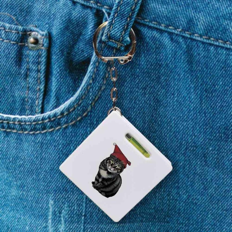 Azeeda 'Cute Cat In Santa Hat ' Keyring Tape Measure/Spirit Level Tool (KM00033808)