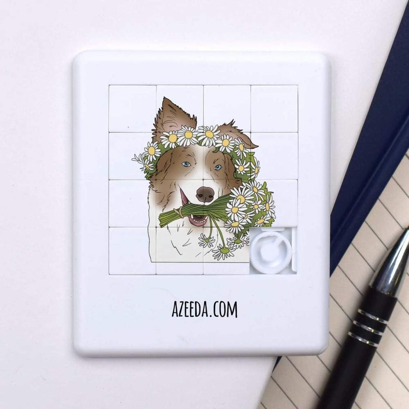 Azeeda 'Dog with Daisy Flowers' Sliding Puzzle (PZ00037262)