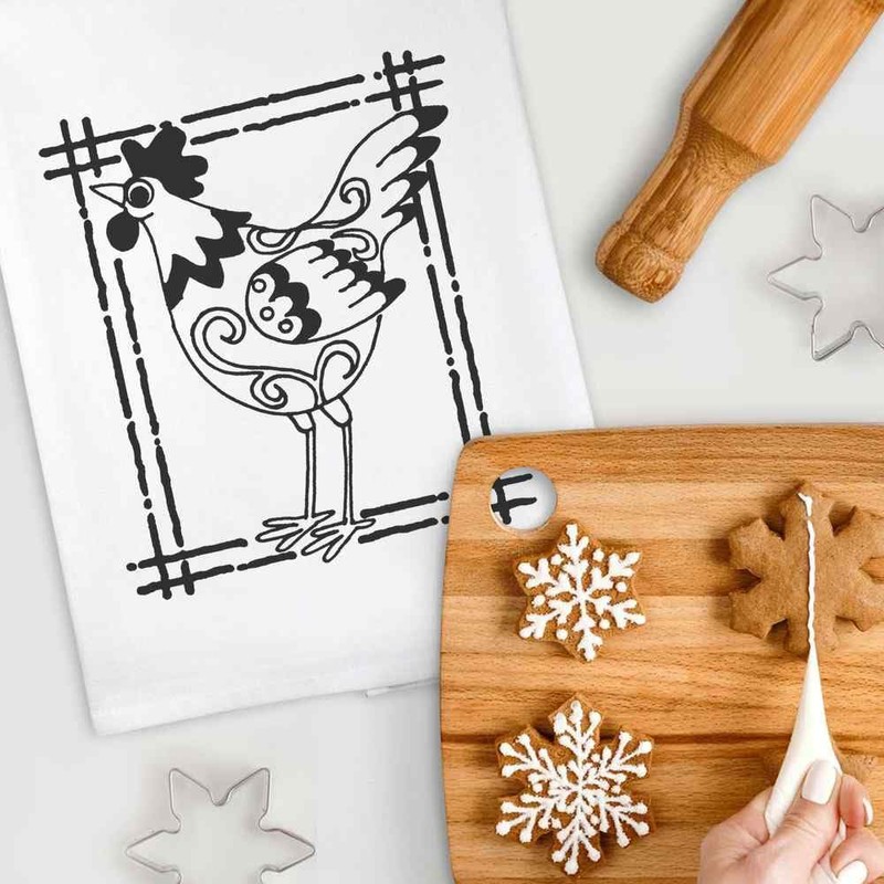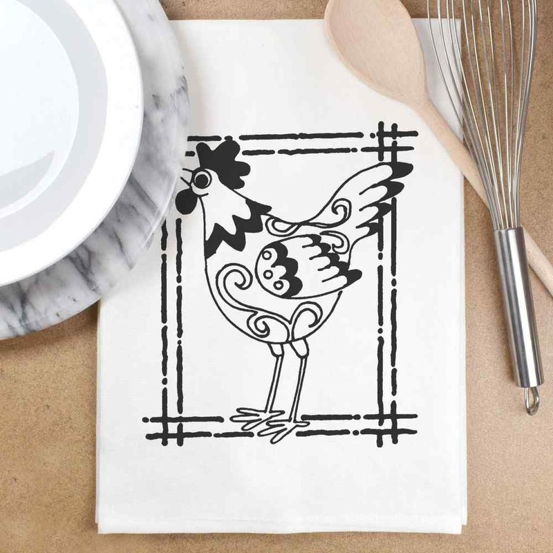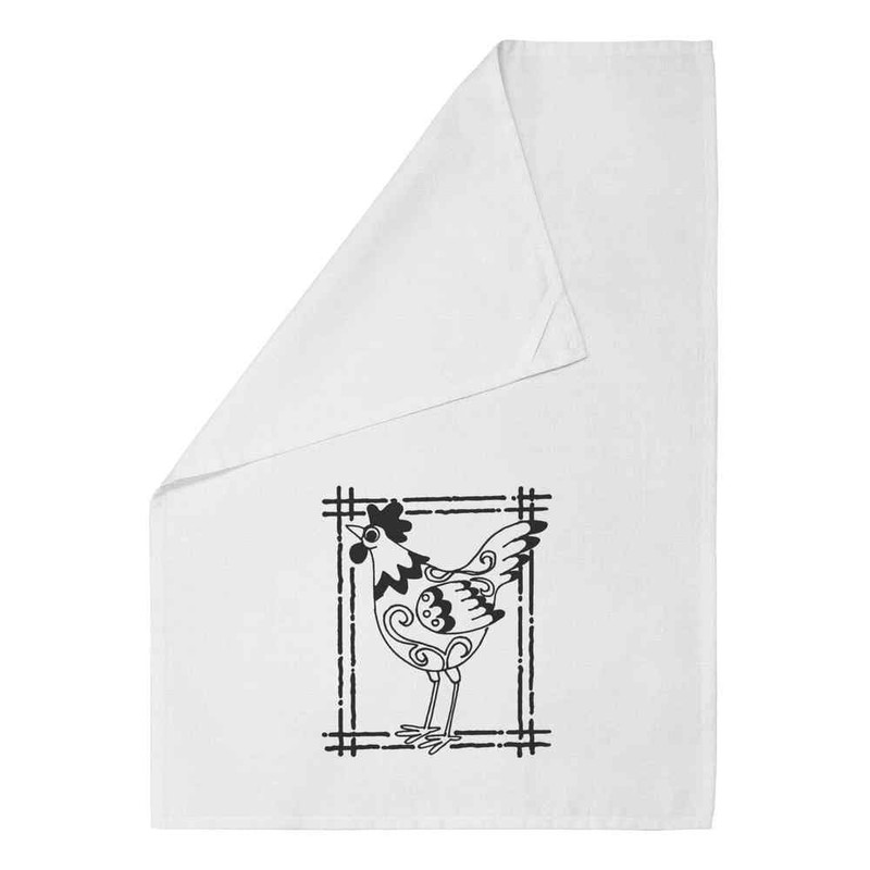 Azeeda 'Eingerahmtes Huhn' Weißes Geschirrtuch aus Baumwolle (TW00012925)