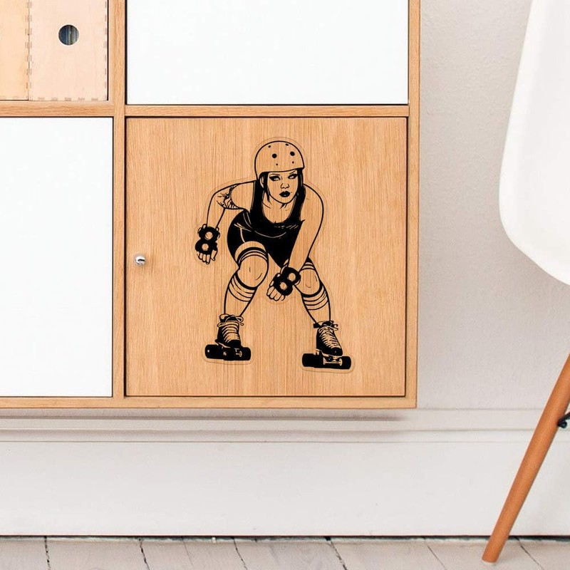 Azeeda Große 210mm 'Roller-Derby-Skater' Permanente Transparente Aufkleber für Fenster/Autos/Wände/Skateboards etc (DC00126414)