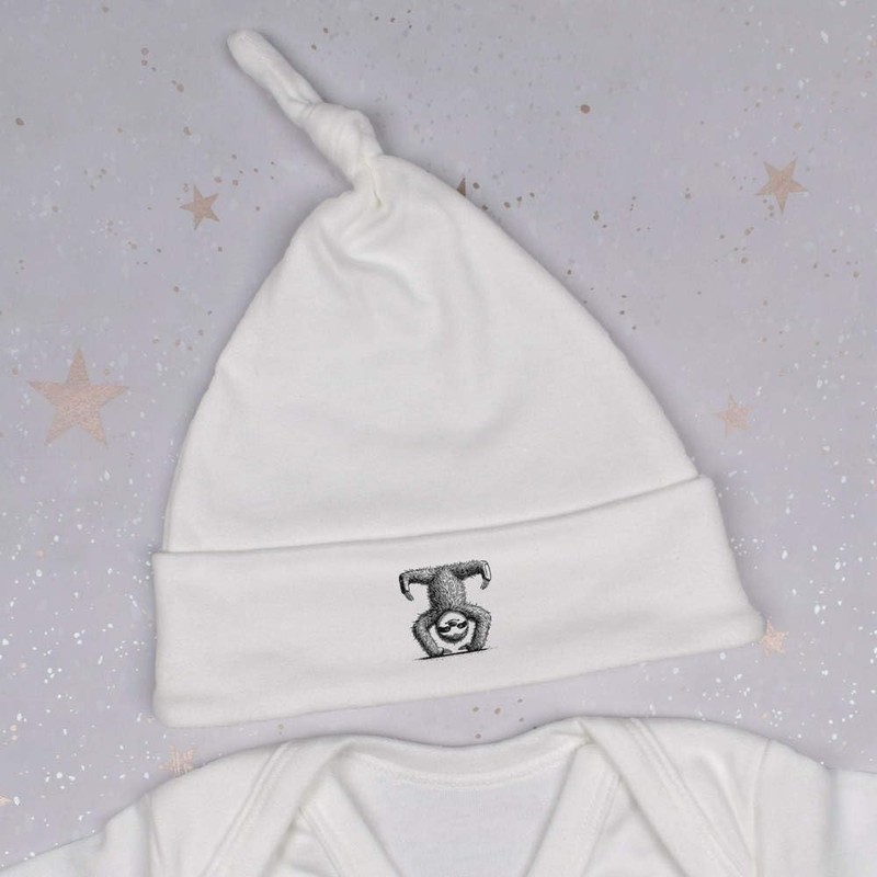 Azeeda 'Handstand Sloth' Baby Beanie Hat (BH00033515) White