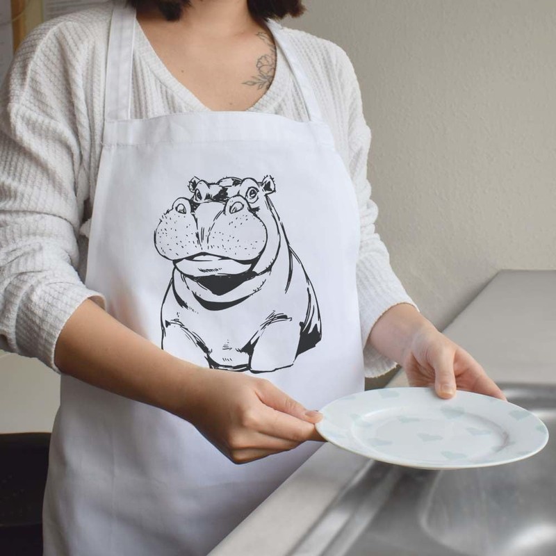 Azeeda 'Hippo Portrait' Unisex Cooking Apron (AP00080603)