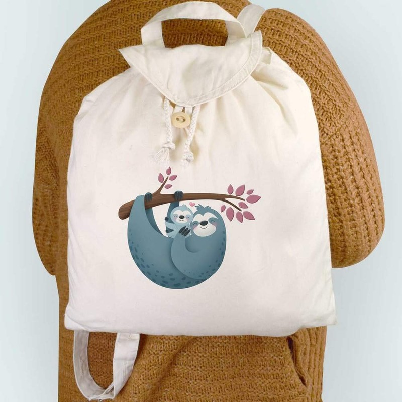 Azeeda 'Sloth Mother & Baby' Canvas Rucksack/Backpack (RK00011995)