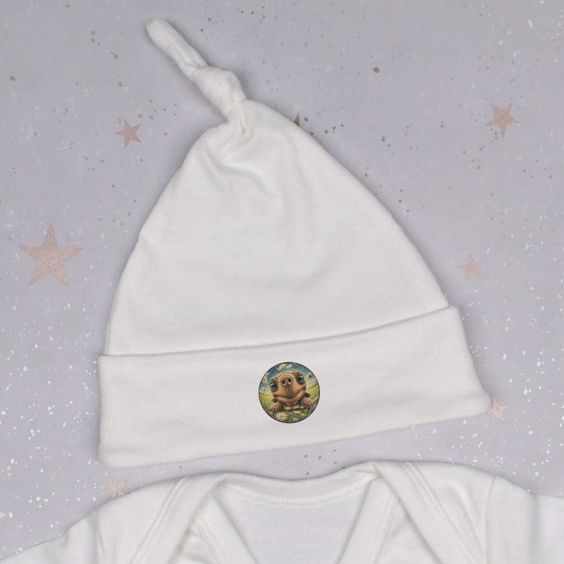 Azeeda 'Smiling Tortoise' Baby Beanie Hat (BH00032799) White