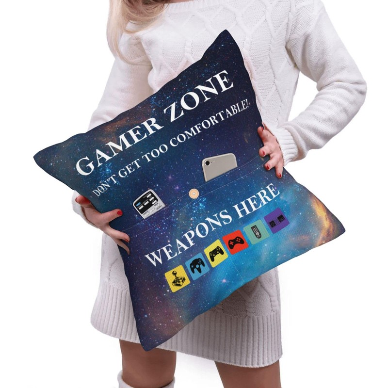 Azefun Gamer Gifts for Gamers,18 * 18 inch Gaming Throw Pillow Cover with 2 Pockets, Square Cushion Cover for Gamers and Gamer Lovers,Gamer Room Decor Gifts for Boyfriend Men Teenage Boys Girls