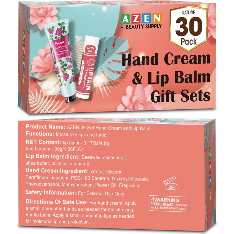 AZEN 30 Sets Bulk Gifts, Hand Cream and Lip Balm Bulk Set with Organza Bag Thank You Card, Baby Shower Wedding Gifts for Guests, Bridal Wedding Favors for Guests,Thank You Gifts for Women