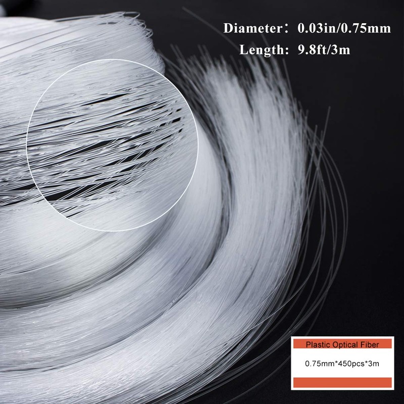 AZIMOM PMMA Plastic 450pcs*0.03in*9.8ft Fiber Optic Cable Strands 0.75mm 3Met...