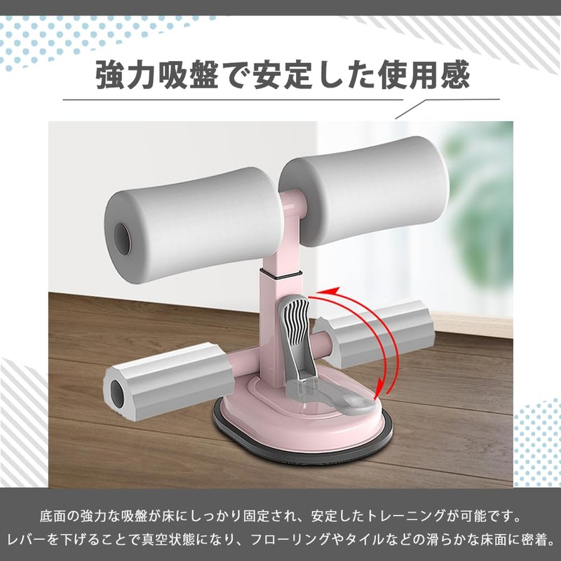 - Strong Suction Cup for Stable Use: The strong suction cup on the bottom is firmly fixed to the floor for a stable workout. By lowering the lever, it becomes vacuum and adheres to smooth floor surfaces such as hardwood and tiles. It is not easy to slip and safe to use. It can be used not only for abs but also for squats and arms training, and is suitable for a wide range of exercis