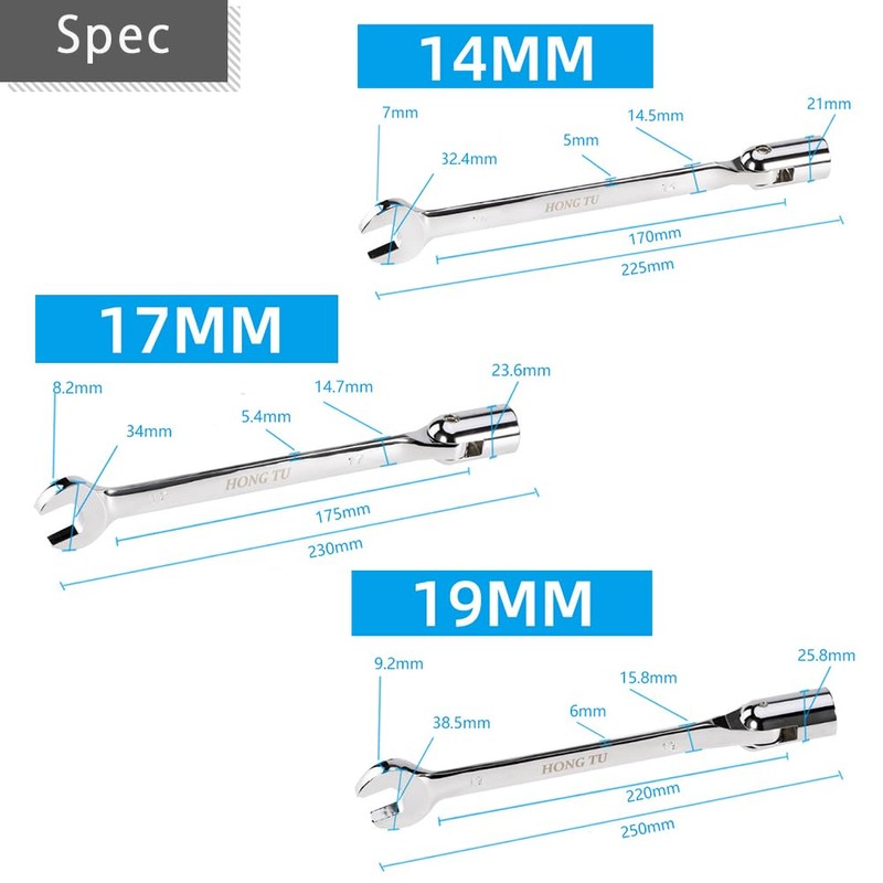AZNABLE Easy Power Wrench Socket Flex Combination Wrench Flex Socket Spanner (17mm)