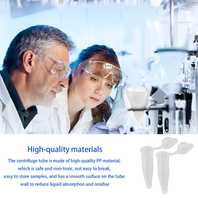 - 🧪Buckle Design: 1.5ml micro test tubes use buckles design, which not only protects the liquid from evaporation or pollution, but also prevents the liquid from leaking. Conical base with snap-on lid, ideal for storing small samples.