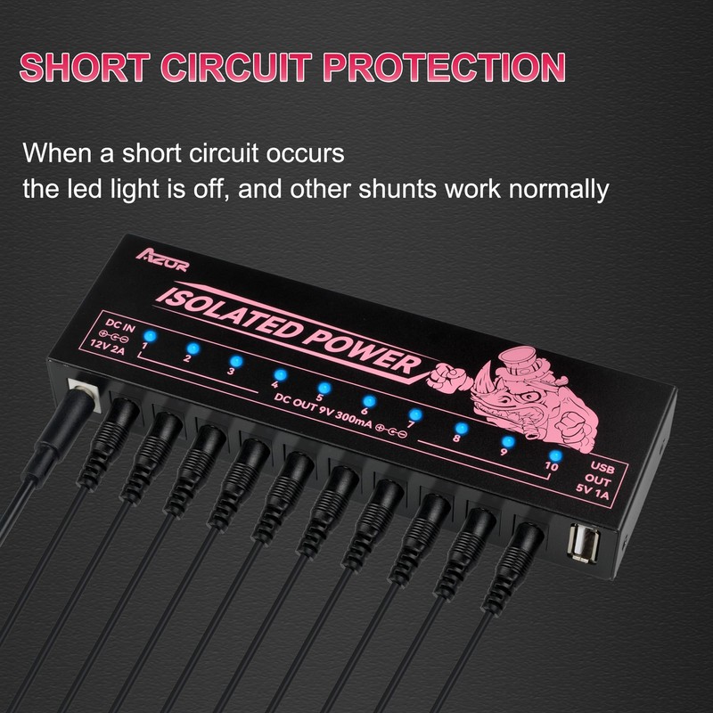 - [10 Isolated Outputs] - With 10 isolated outputs, the AZOR Mini Isolated Pedal Power Supply(9V 300mA) provides a versatile power solution for a variety of effect pedals and devices include 10 x 9V 300mA