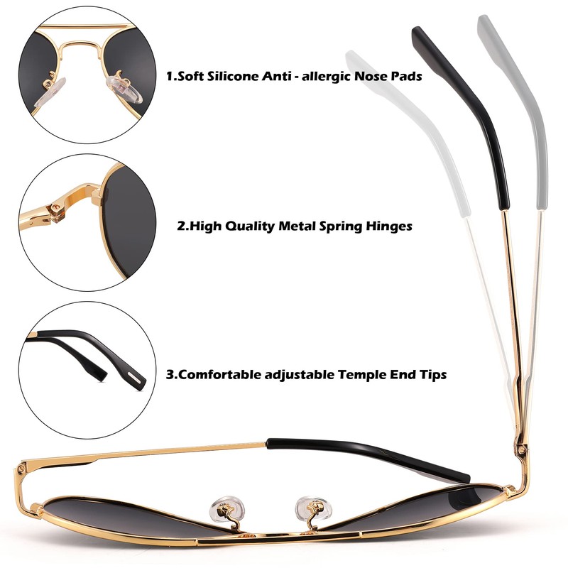 - CLASSIC STYLE - These shades are inspired by vintage aviator sunglasses, but with a modern twist. The sleek metal frame and classic design make them perfect for everyday wear or special occasions.