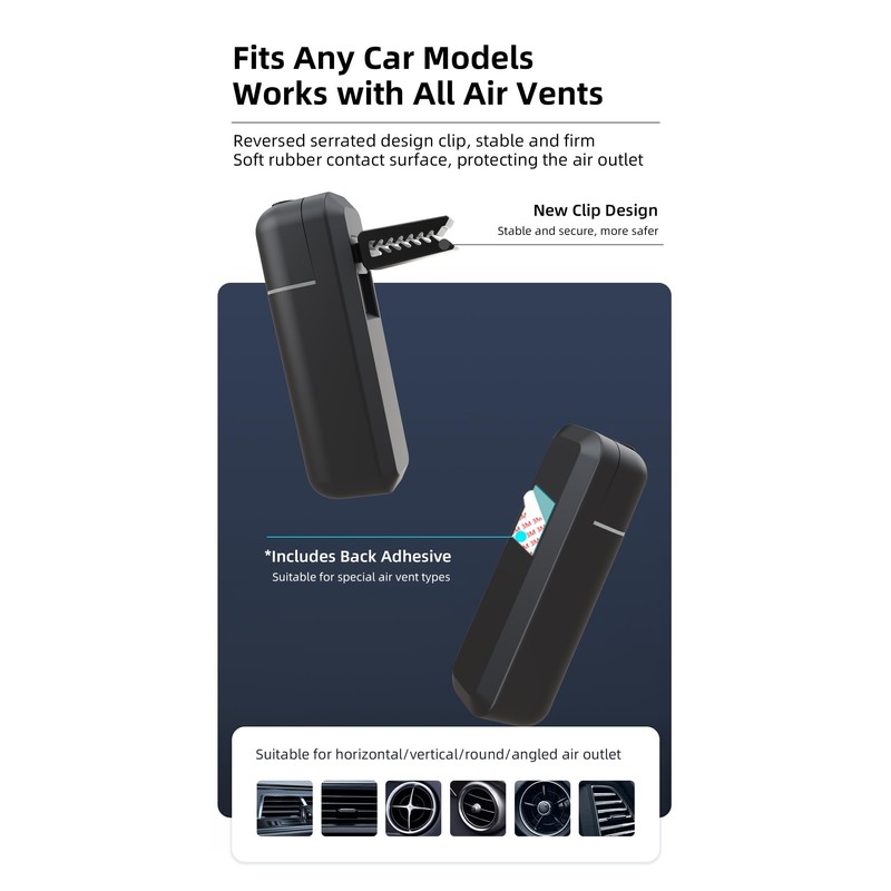 - Complete Package: Azoss car diffuser includes diffuser unit, 6 essential oil refills (10ml each), USB-C cable, and universal vent clip or adhesive mount for seamless use on horizontal or vertical car vents.