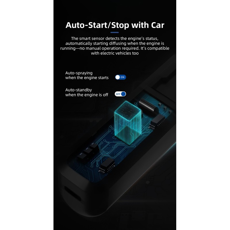 - Intelligent Auto Sensor: Azoss features a smart vibration sensor that activates the diffuser only when your vehicle is in motion, conserving battery and enhancing convenience.