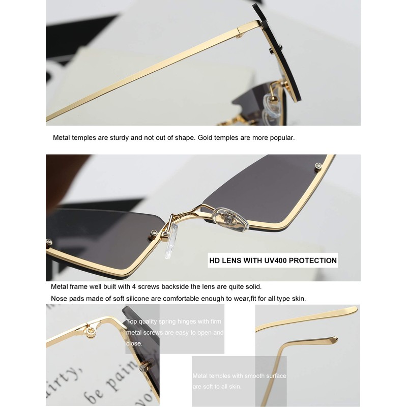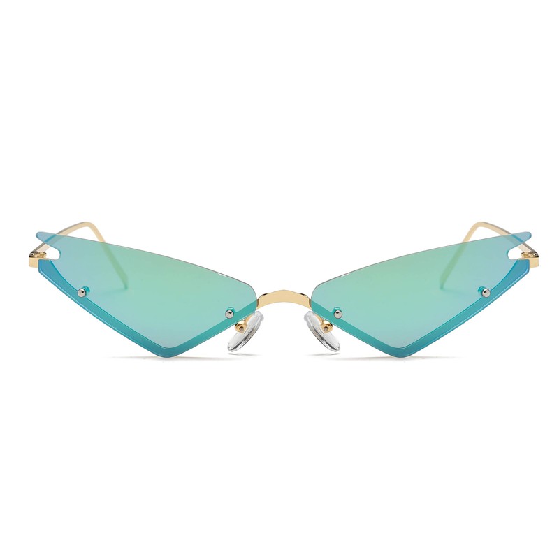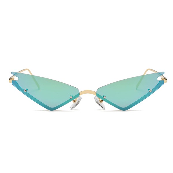 Azoxus Women Futuristic Small Cateye Sunglasses Triangle Rimless Tinted Green Mirrored Lens