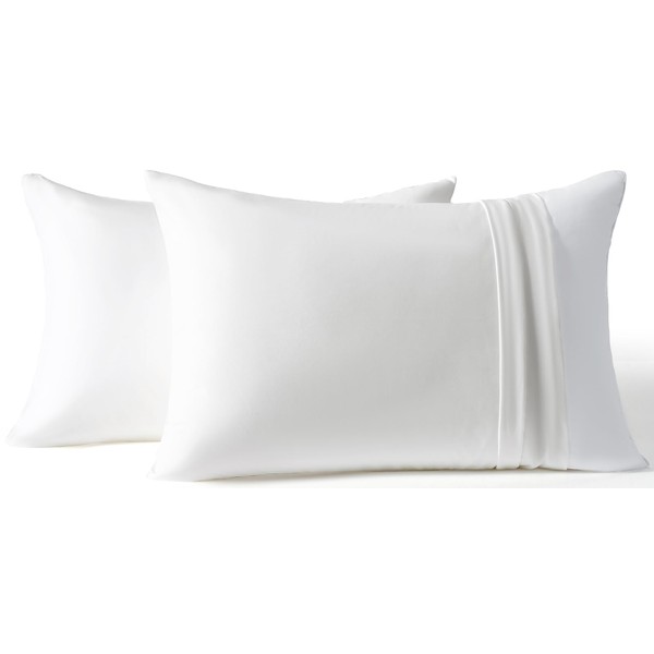 AZRA 2 Piece Pillow Case Set Peach Skin Zippered Zippered Stylish All Season Pillowcase Breathable Quick Drying 43*63cm White
