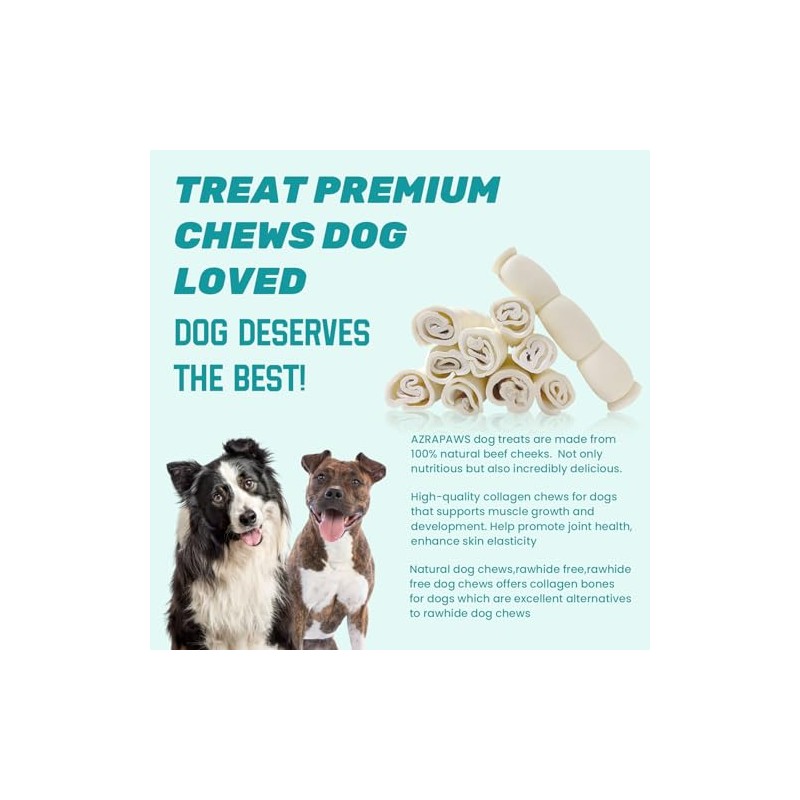 AZRAPAWS Beef Cheek Rolls Beef Cheeks for Dogs Rawhide Bones Rich Collagen Sticks Chews for Dogs Pet Safe Rawhide Treats Long Lasting Beef Dog Chews Retriever Rolls Rawhide Free Dog Chews