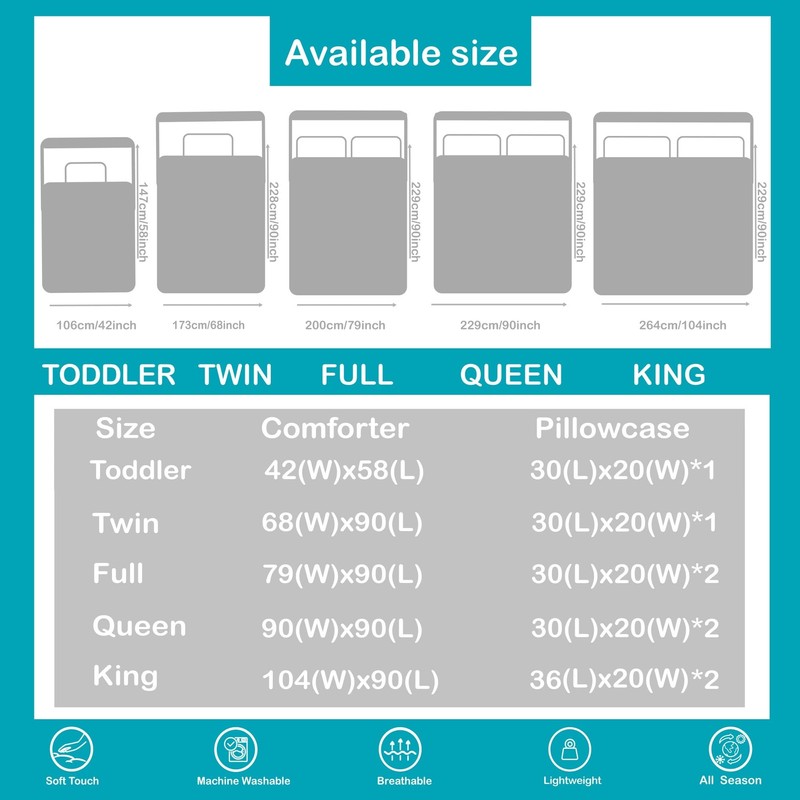 - Queen Size You Can Get: 1 Down Comforter 90"x90" and 2 Pillow Case 30"x20" In Bag (Tips: Duvet Insert and Cases Are Printed on The Rront Side Only)