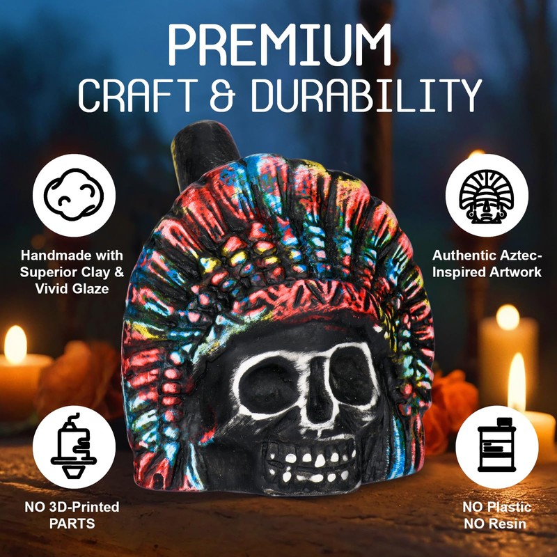 - CONSTRUCTION: Carefully crafted with attention to traditional Aztec artistic details, featuring intricate skull features and ornate headdress design