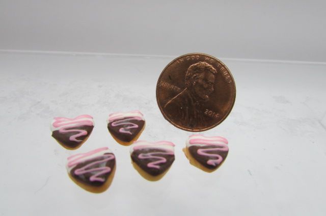 Aztec Dollhouse Miniature Valentines Day Heart Doughnut Set Chocolate & Pink G6754