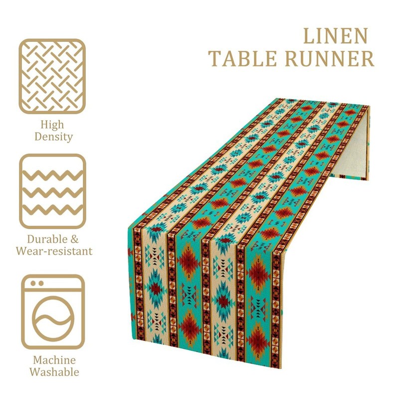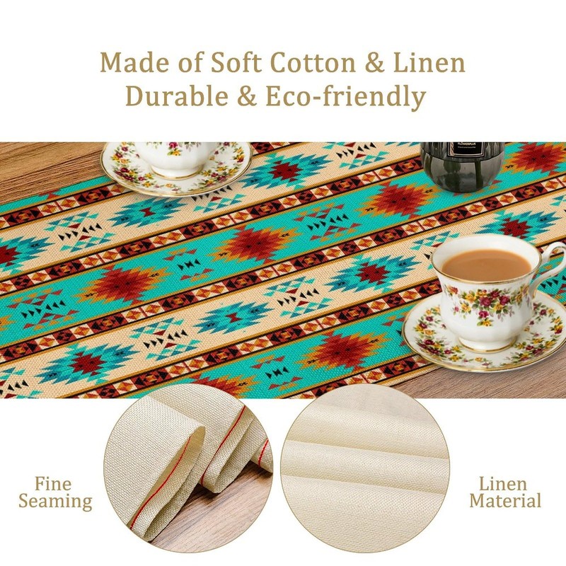 Aztec Print Table Runner, Ethnic Style Native American Ethnic Southwest Table Runners Dresser Scarves Table Setting Decor for Garden Farmhouse Party Family Dinner Home 13x36in