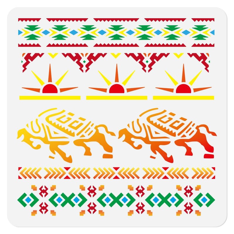 Aztec Sun Buffalo Border Stencil Southwest Boho Template 30 x 30cm Reusable Geometric Native Desert Stencil for Painting on Wood Wall Floor Fabric