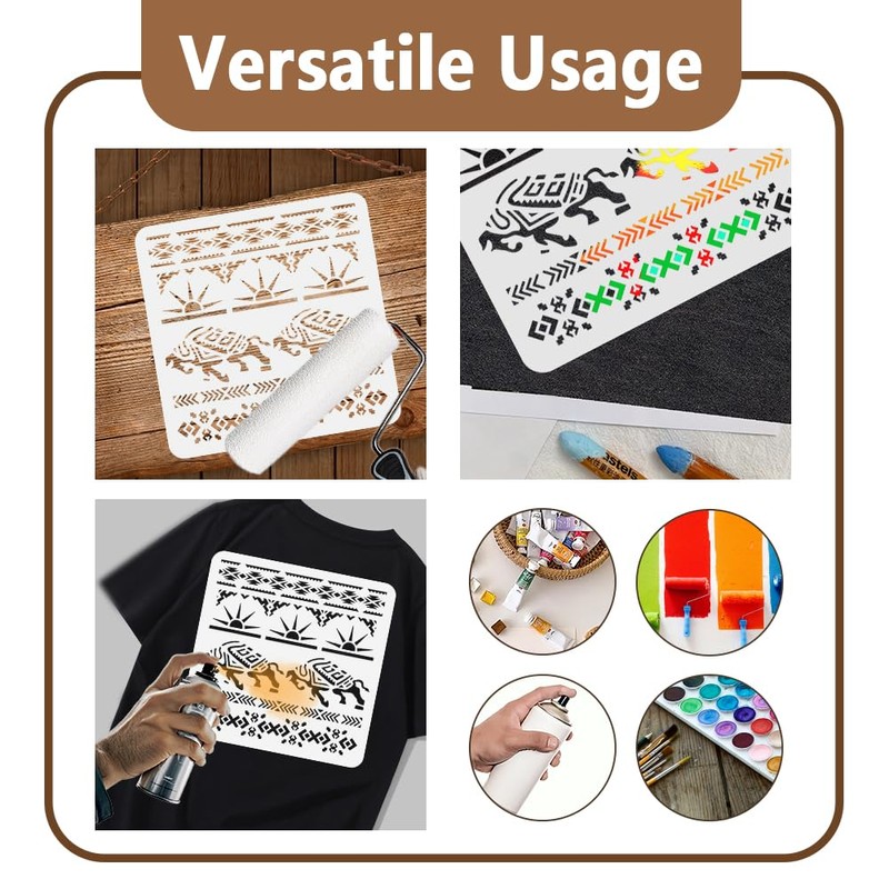 - Portable Size: Including 1pc aztec sun buffalo craft stencil measuring 11.8" x 11.8", convenient for daily use, can be used with sponge brushes, painting brushes, acrylic paints or spray with a spray can to create an unique artwork