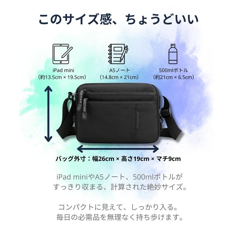 8-pocket design for outstanding functionality. It has many pockets and a D-ring that can be attached to keys, and is designed with attention to detail. Great for commuting to work or school. It weighs only 11.8 oz (310 g), and comes with a shoulder strap that relieves the burden on your shoulders.