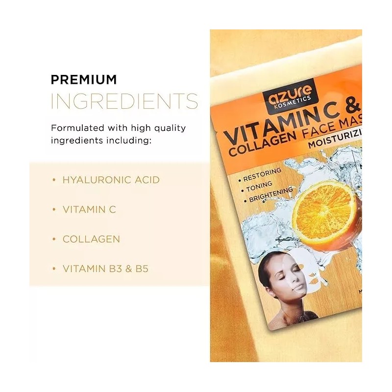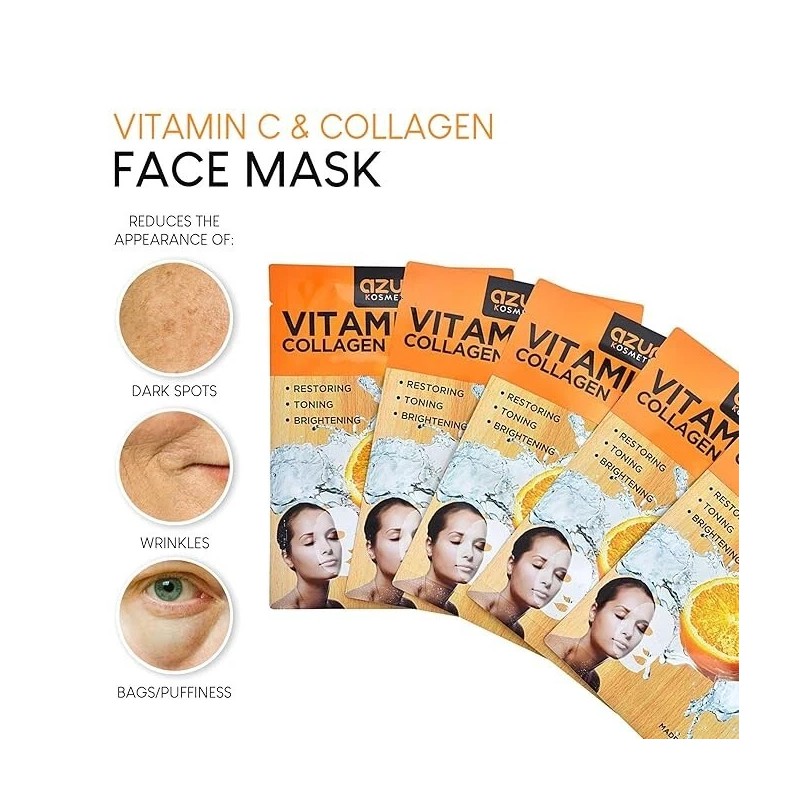 AZURE Vitamin C & Collagen Moisturizing Facial Mask- & C - Pack of 5