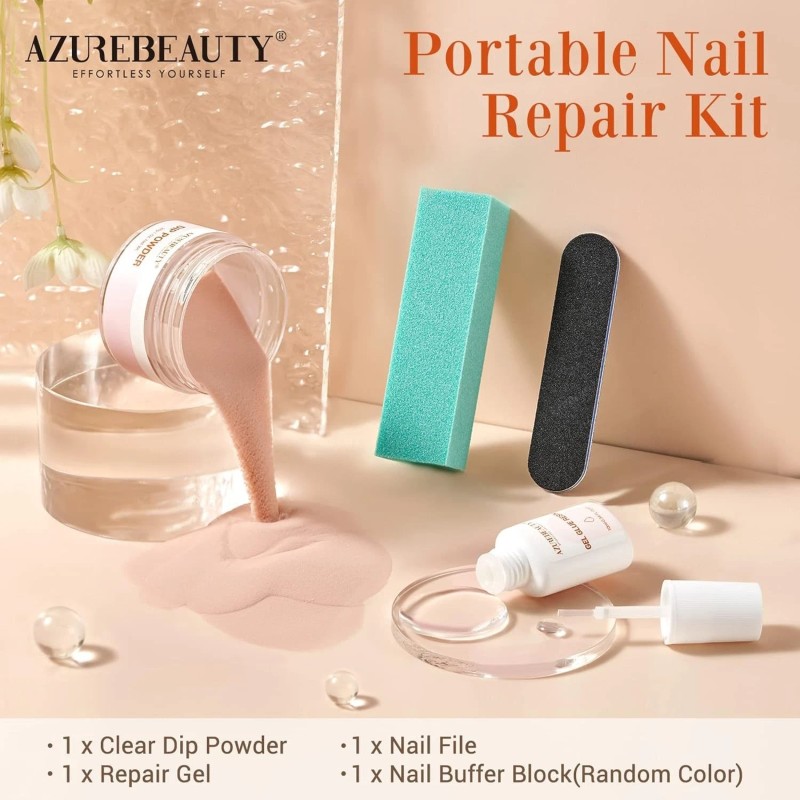 AZUREBEAUTY Nail Repair Kit for Broken Cracked Split Nails with Glue & Powder