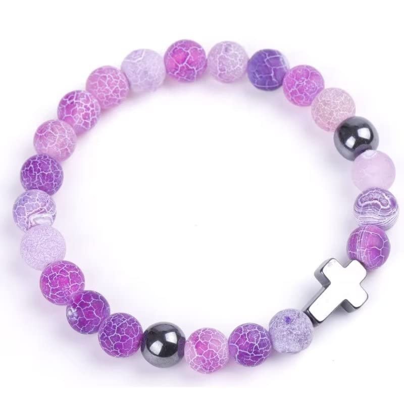 Azusa Sun Religion Cross Natural Stone Beads Stretch Bracelets for Women Men 8MM Bead Cross Elastic Prayer Bracelet Friendship Valentine’s Day Birthday Jewelry Gift - Purple