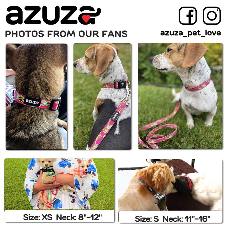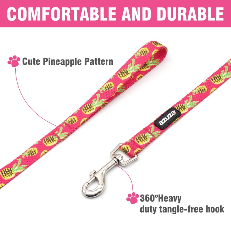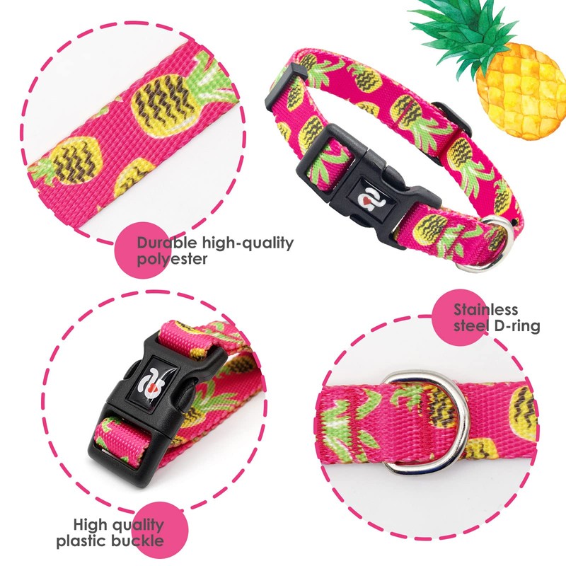 azuza Dog Collar and Leash Set, Pineapple Patterns on Nylon Collar and Matchi...