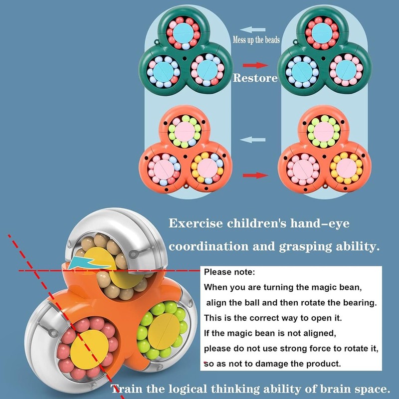 • 【Intellectual Development】 The Magic Beans Rotating Rubik's Cube toy suitable for those over 3 years old can promote thinking, help children exercise hand-eye coordination and master skills, cultivate brain space and logical thinking skills, friends can gather together for interactive games, and can also promote the relationship between children relationship, allowing children to have more fun