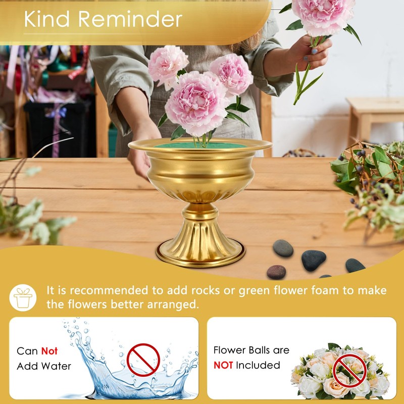 - EASY TO ASSEMBLE: Unlike other metal compote vases on the market that require complex installation processes, you only need to spend one minute putting the two main components together and tightening them with screws to complete the installation, saving a lot of time. In addition, we recommend using green floral foam or rocks to better match the flowers. Please do not add water to it.