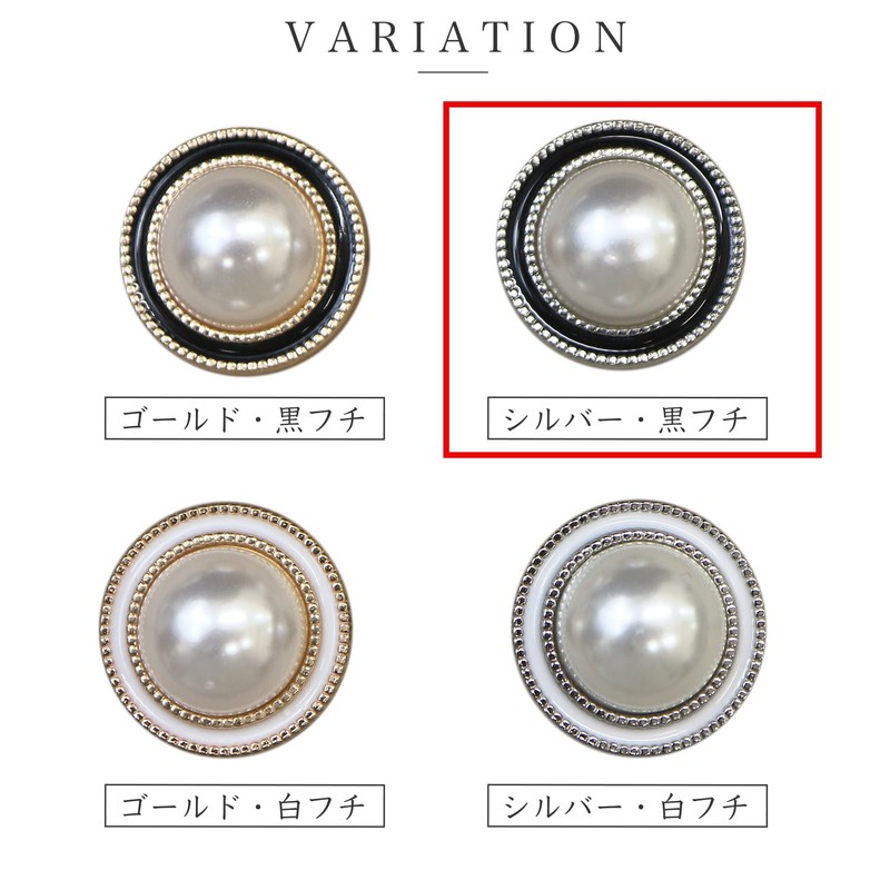 - Pearl Color: White; Button Color: Silver, Silver; Decoration: Black edge