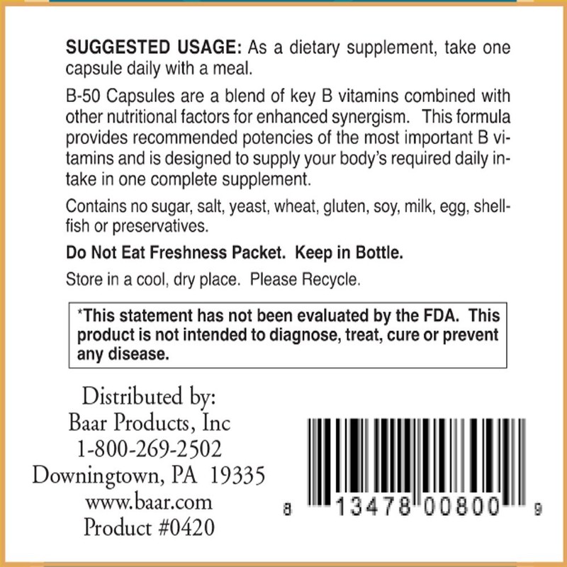 B-50 Vitamin B Complex, 100 Veg Capsules