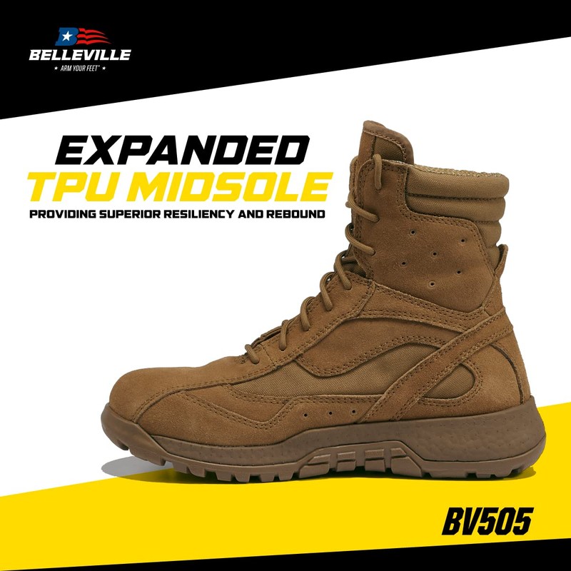 B Belleville Arm Your Feet BV505 8 Inch AMRAP Athletic Field Boot - Leather & Nylon Combat Boots for Men, Moisture-Wicking Lining, TPU Midsole, and Rubber Outsole (8.5, Coyote Brown)